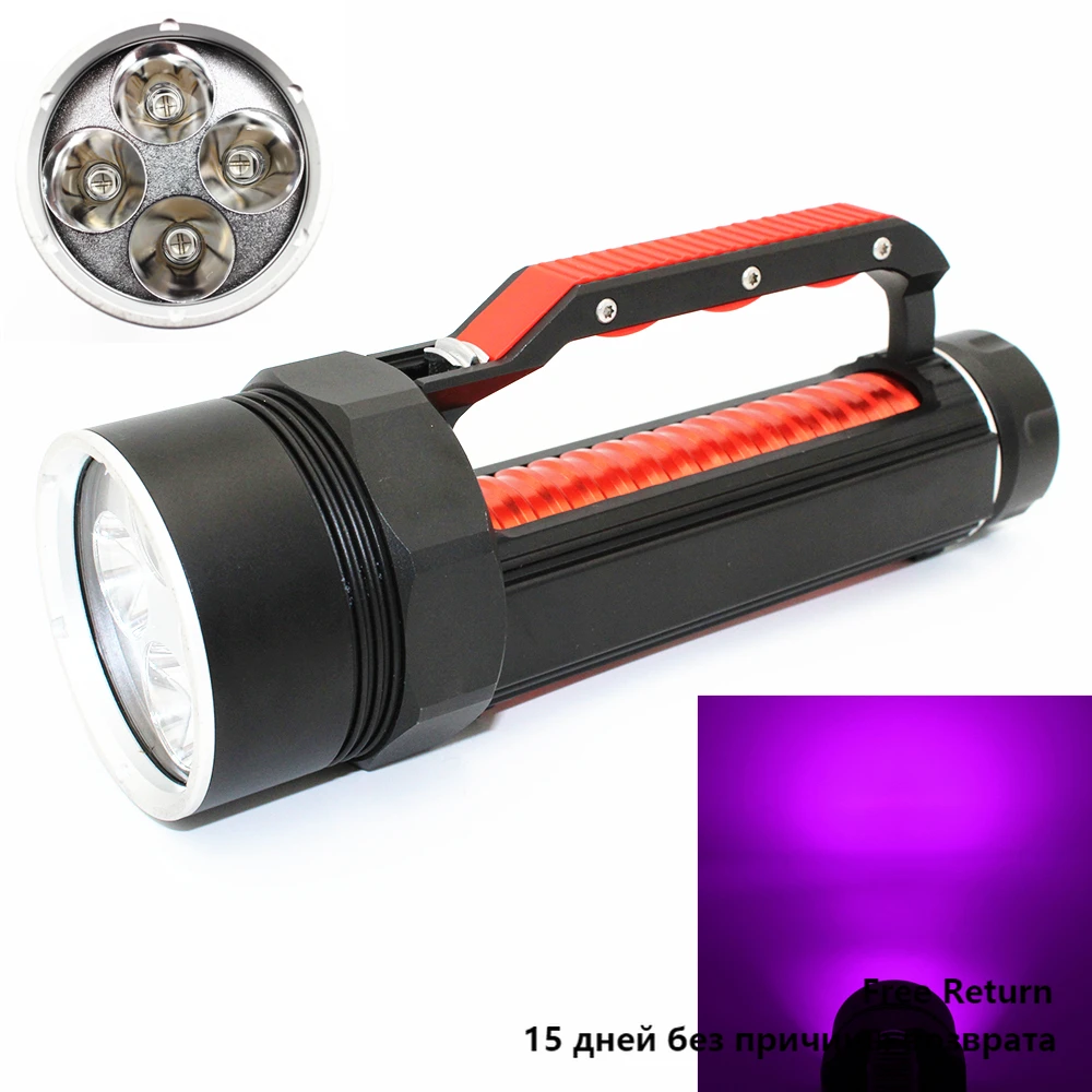 Product Name: UV Tahan Air LED Senter Selam Taktis 4x 395nm UV LED Ungu Lampu Sinar Ultraviolet Untuk Amber Kalajengking Berburu