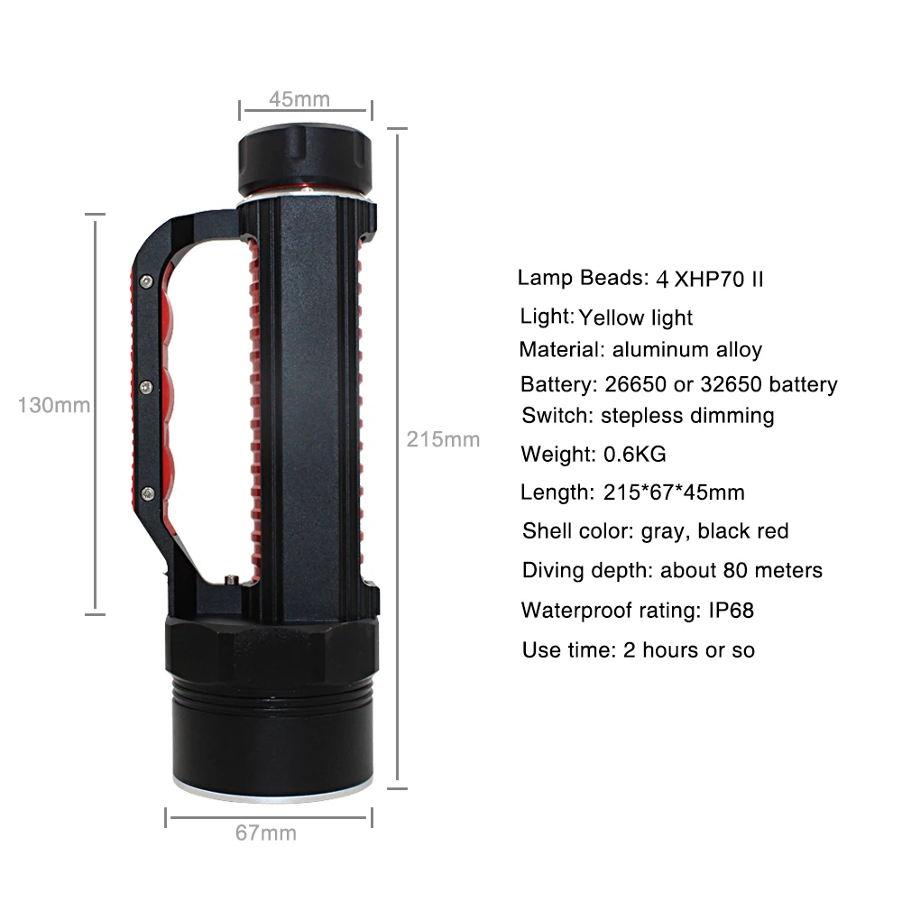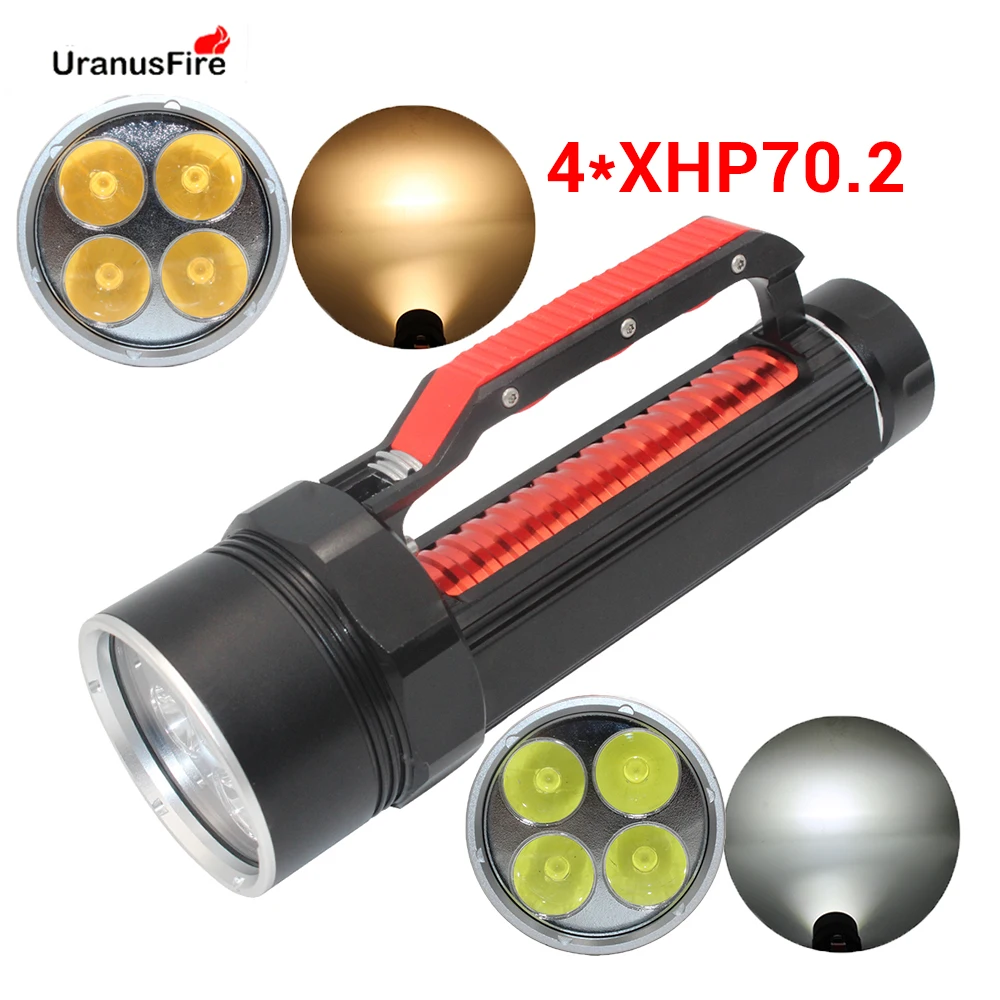 Product Name: XHP70.2 LED Portable Senter Kuning Taktis Putih Menyelam Lampu Lampu Waterpoof 4 * XHP70.2 Scuba Senter Underwater 100M
