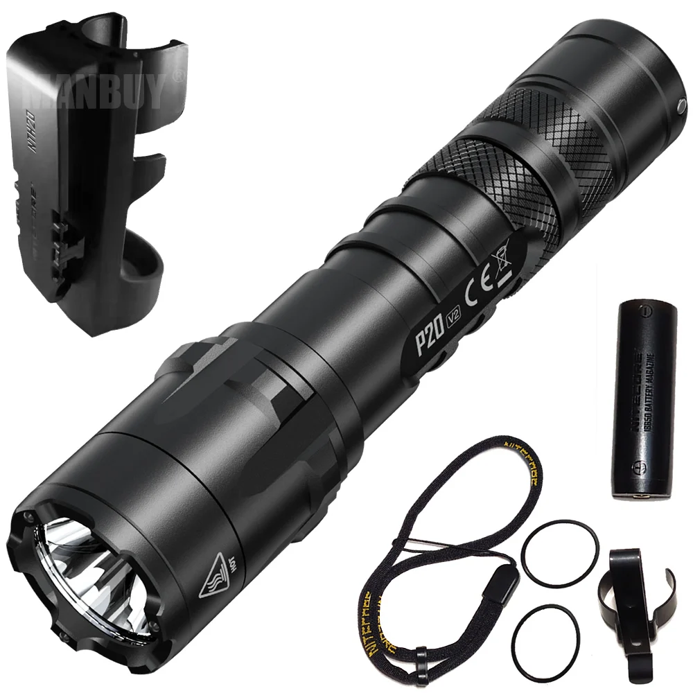 Product Name: NITECORE 1100 Lumen P20v2 CREE XP-L2 V6 LED Gear Berburu Penegakan Hukum Militer Luar Kamp Senter Taktis Tanpa 18650