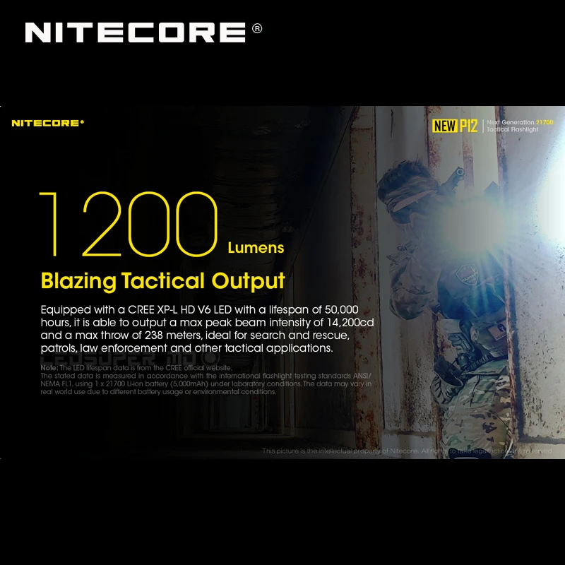 Product Name: 1200 Lumen Nitecore Baru P12 Generasi Berikutnya 21700 Taktis Senter Dengan NTH10 Sarung