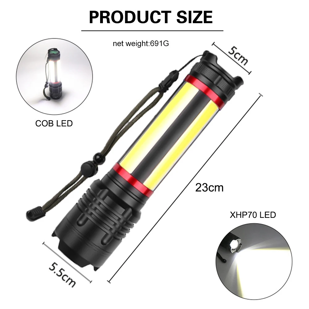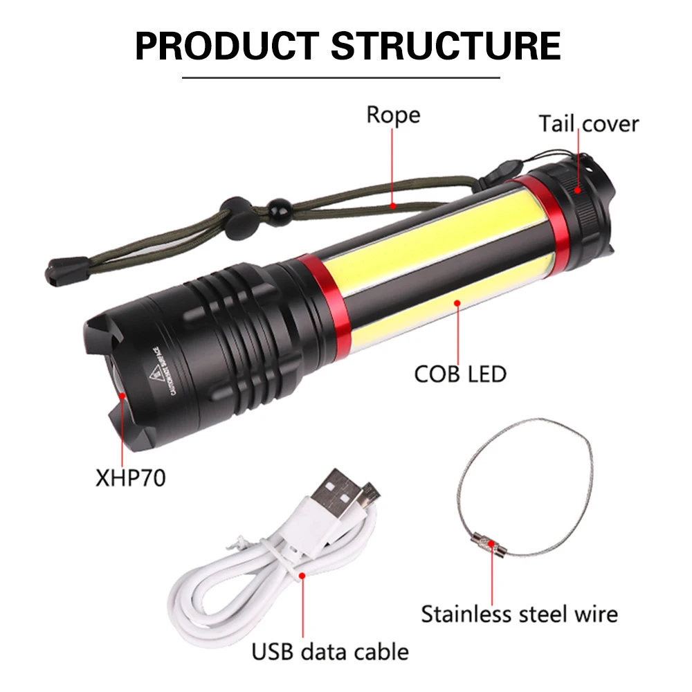 Product Name: 12000LM XHP70.2 + Tongkol Yang Paling Kuat Senter LED USB Rechargerable Built-In 7200 M Ah Taktis Zoom Obor Lanterna Untuk Berkemah