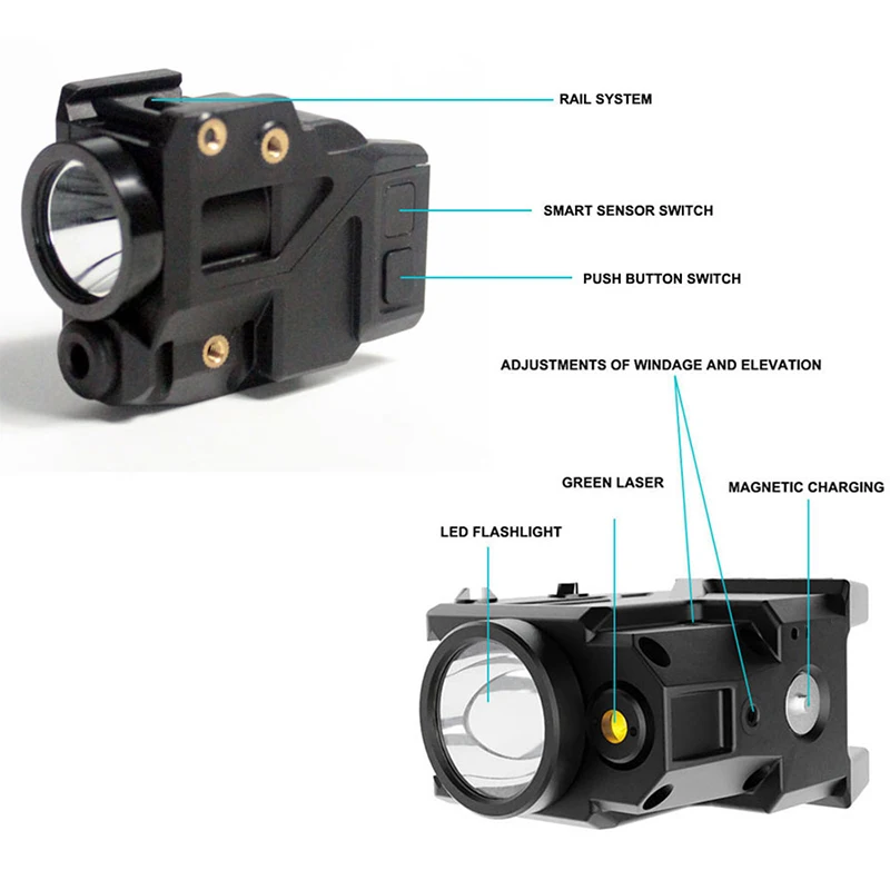 Product Name: Senter LED 550lm Lumen Tinggi Taktis Dan Kombo Penglihatan Laser Hijau Untuk Berburu Pistol Pertahanan Diri