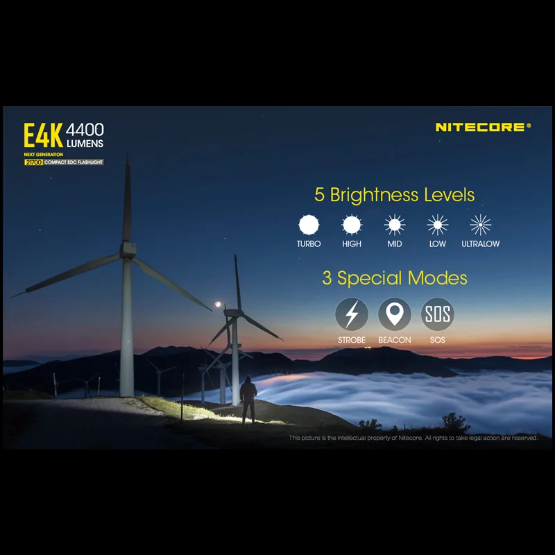 Product Name: NITECORE E4K Compact EDC Senter 4400 Lumen Isi Ulang Dengan NL2150 Baterai 5000MAh Lampu Troch Senter Taktis