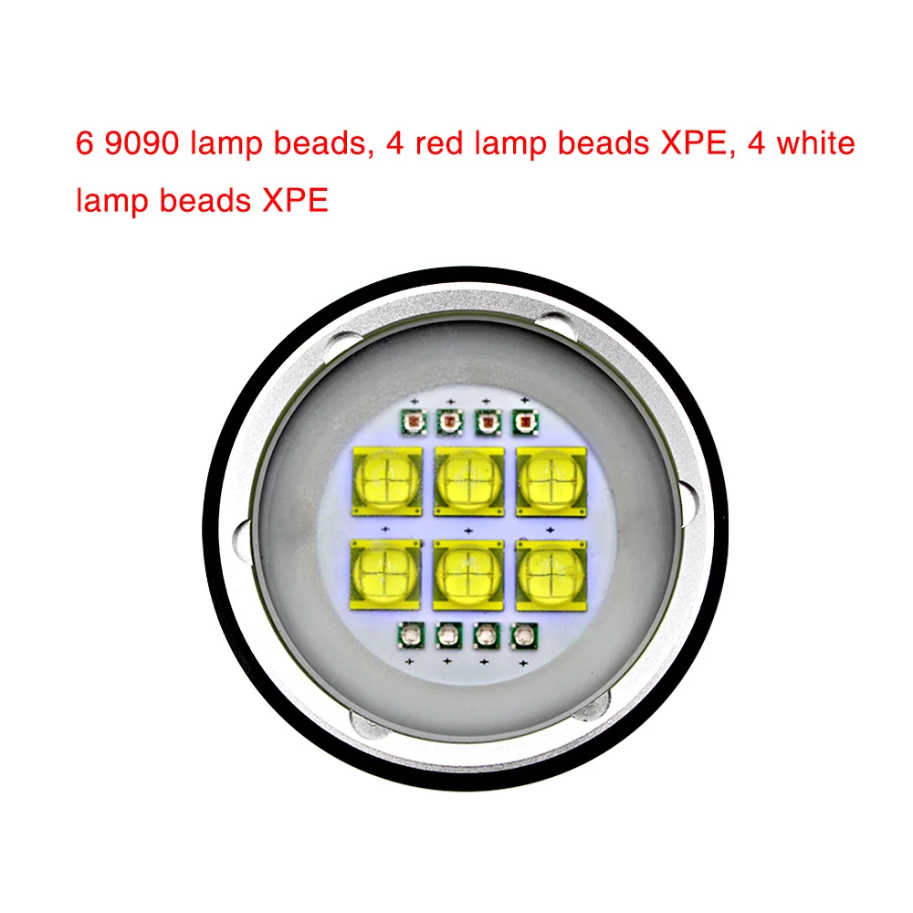 Product Name: Senter Menyelam Video Fotografi 6X9090 LED + 4x Merah + 4x Biru Lampu LED Bawah Air 100M Lampu Obor Taktis Tahan Air