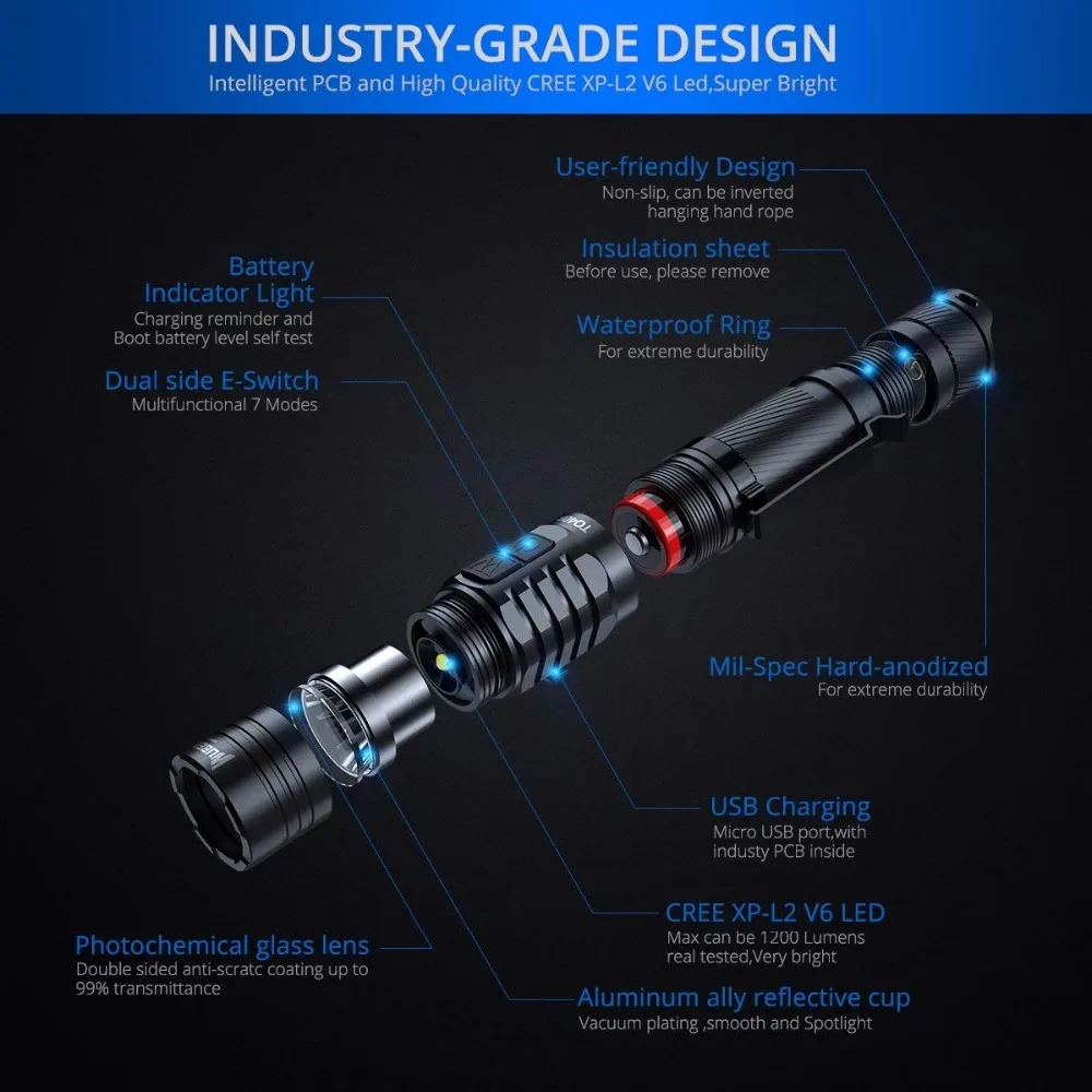Product Name: WUBEN TO40R Senter LED Taktis 1200 Lumen USB Isi Ulang IPX8 Tahan Air Dengan 18650 Li-baterai
