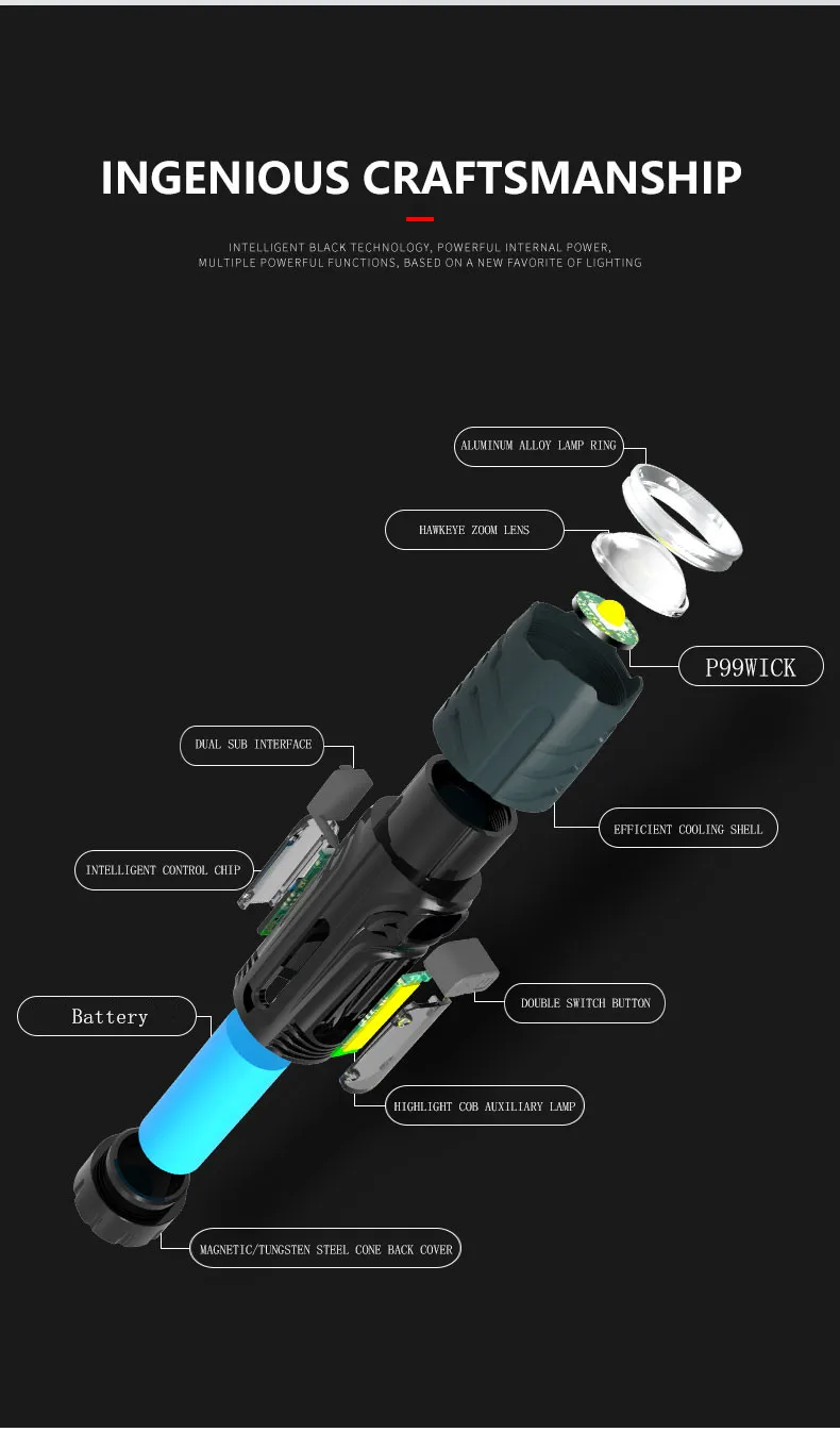 Product Name: Sorot XHP99 + Tongkol Led Senter Lentera Dengan Jendela Palu Pertahanan Diri Led Torch Multifungsi Taktis Senter