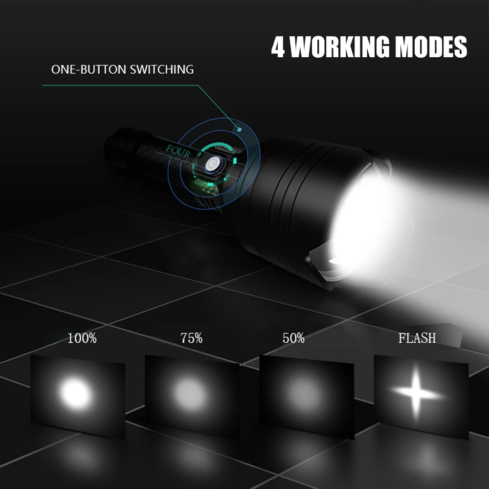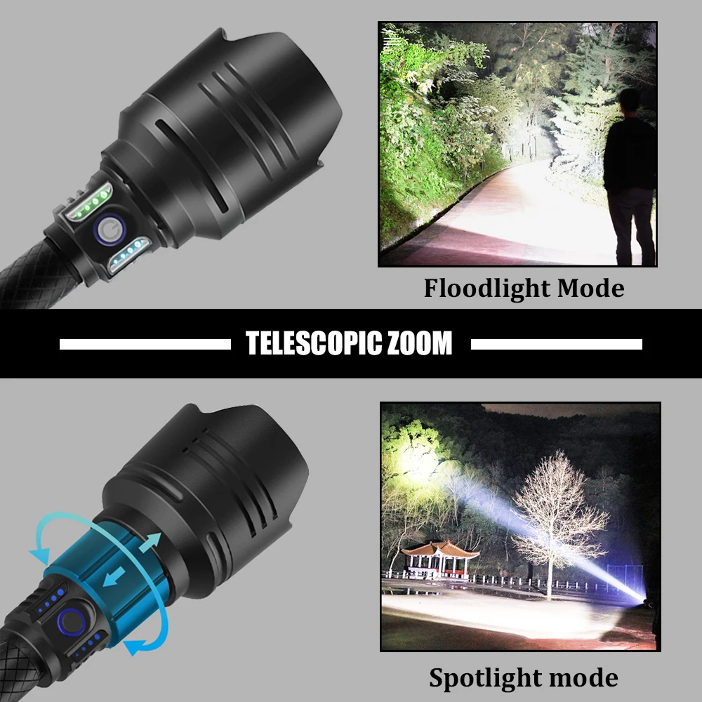 Product Name: Kuat 7-Core P10 Senter LED Dengan Lensa Berkualitas Tinggi USB Input & Output Fungsi Taktis Torch 4 Mode Diperbesar 18650 Lampu