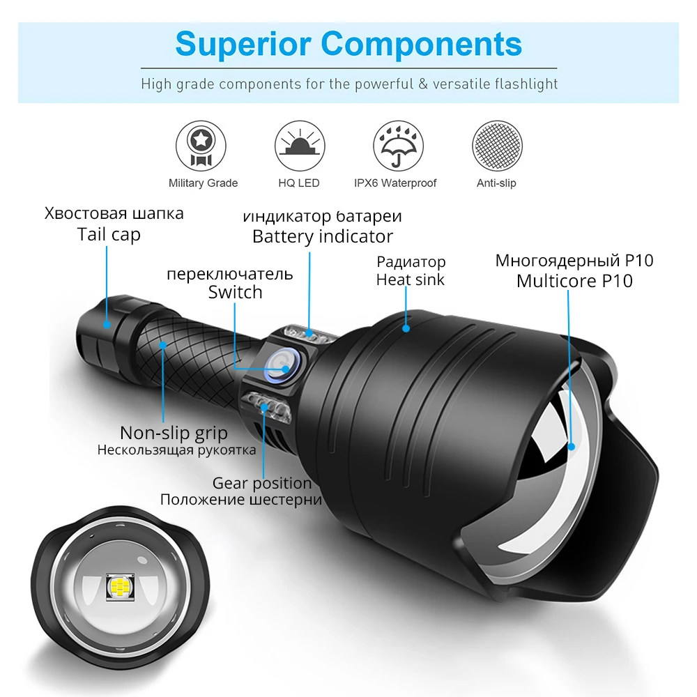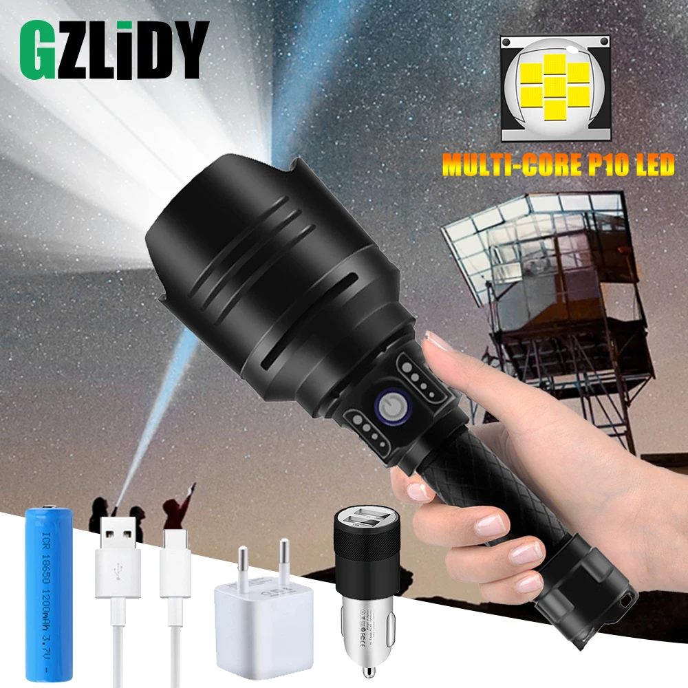 Special Offer Kuat 7-Core P10 Senter LED Dengan Lensa Berkualitas Tinggi USB Input & Output Fungsi Taktis Torch 4 Mode Diperbesar 18650 Lampu Discount (20%OFF) Today!