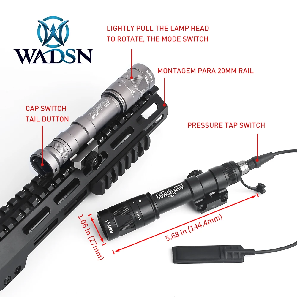 Product Name: WADSN Taktis Surefir M600W Senter LED 160 Lumen Senapan Berburu Senjata Strobo Cahaya Picatinny Senter Untuk Pistol EX377