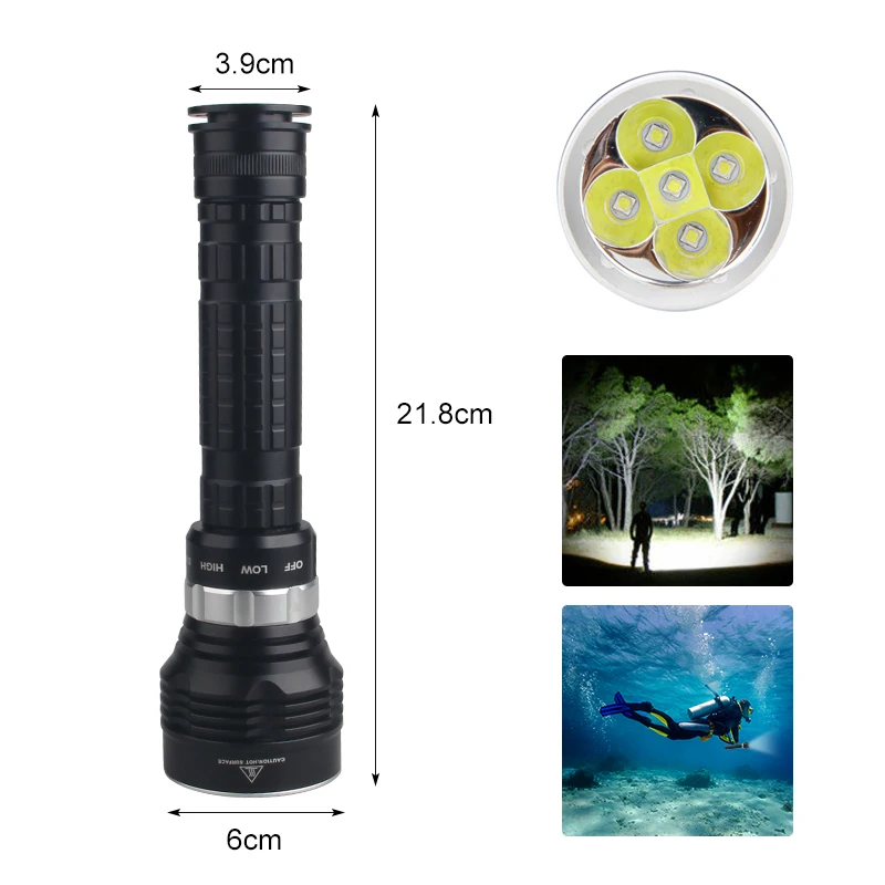 Product Name: 2500 Lumen Menyelam Untuk Senter Obor 5 * T6 Scuba Diving Obor 200M Bawah Air Tahan Air Taktis LED Senter Lampu Lentera