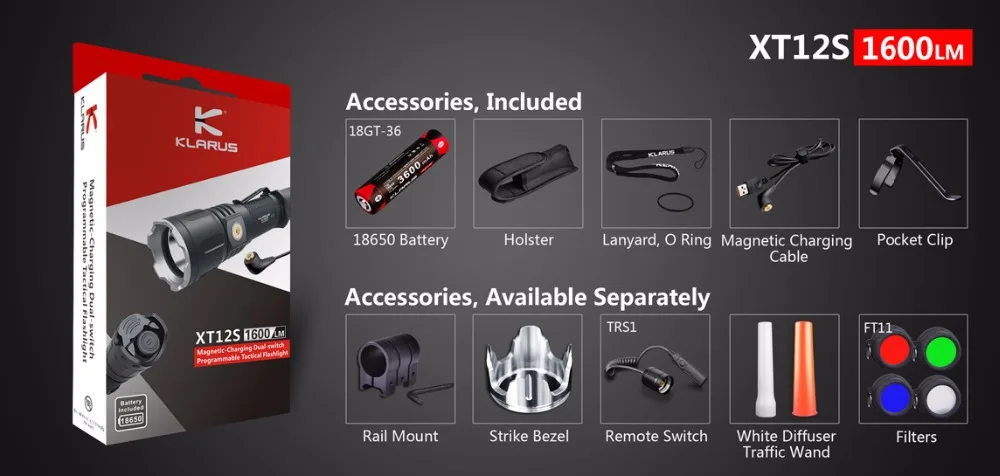 Product Name: KLARUS XT12S Senter Led CREE XPH35 HI D4 1600LM Rechargeable Senter Dengan Baterai Senter Taktis Untuk Bertahan Hidup Pencarian