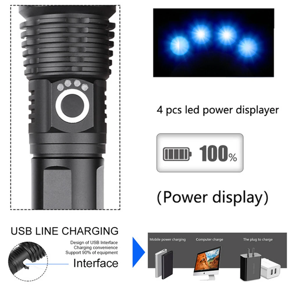 Product Name: Senter LED 1000000 Lumen Xhp90 Xhp70 Senter Taktis Berburu USB Isi Ulang Dengan Lampu Zoom Lampu Kilat LED