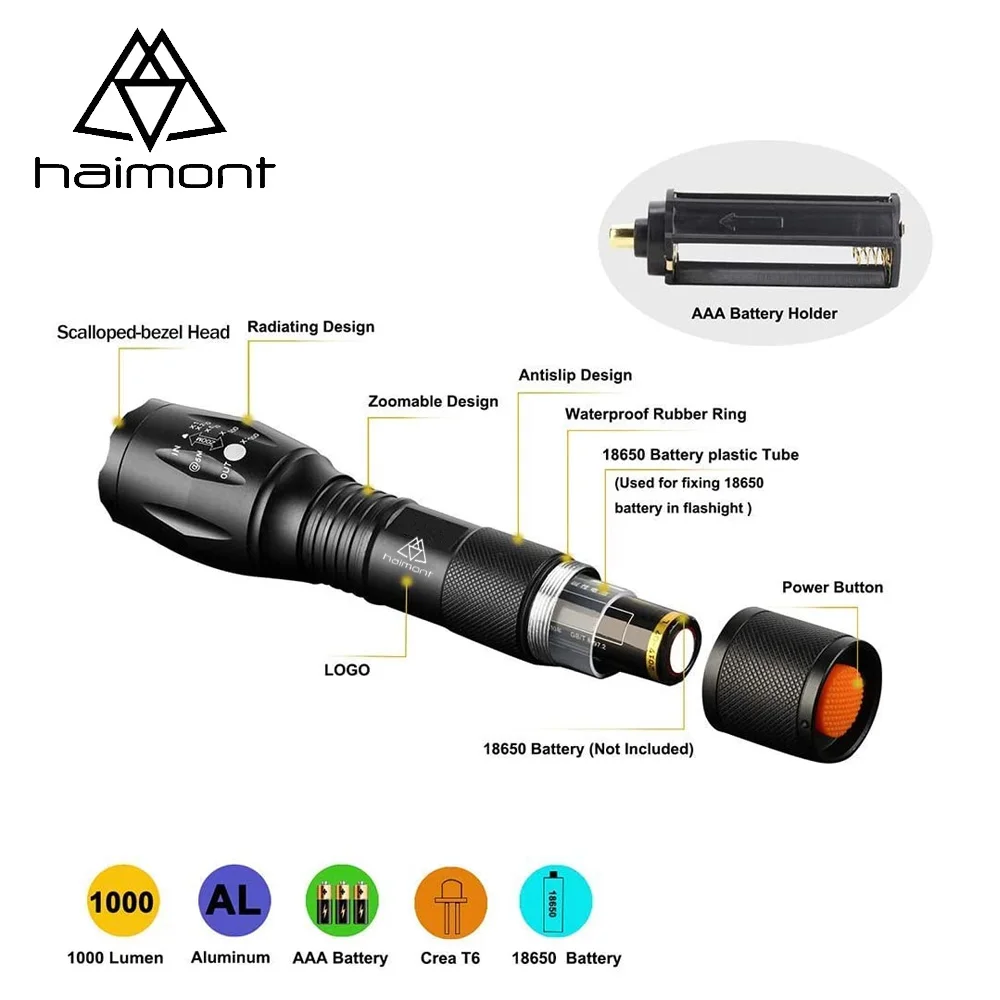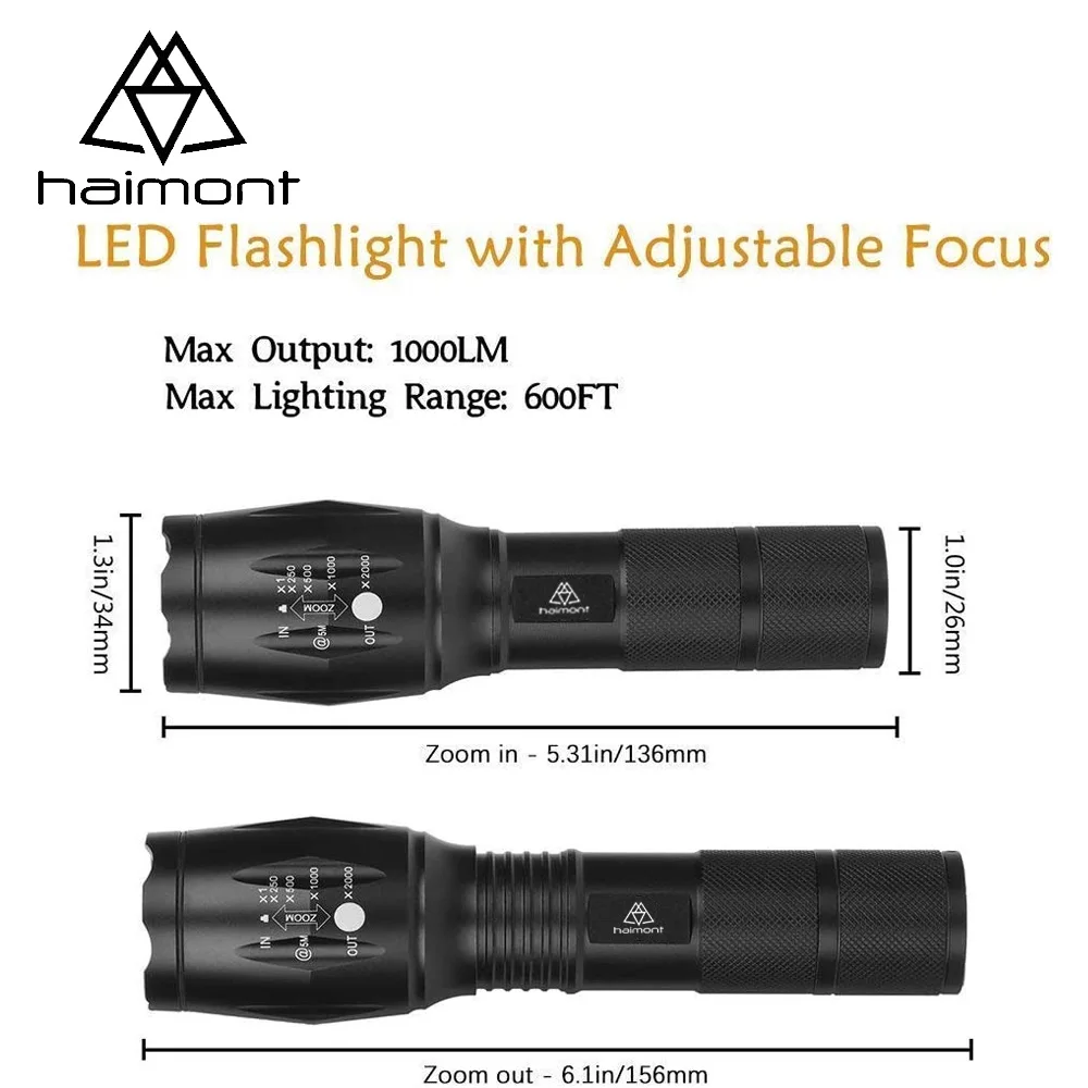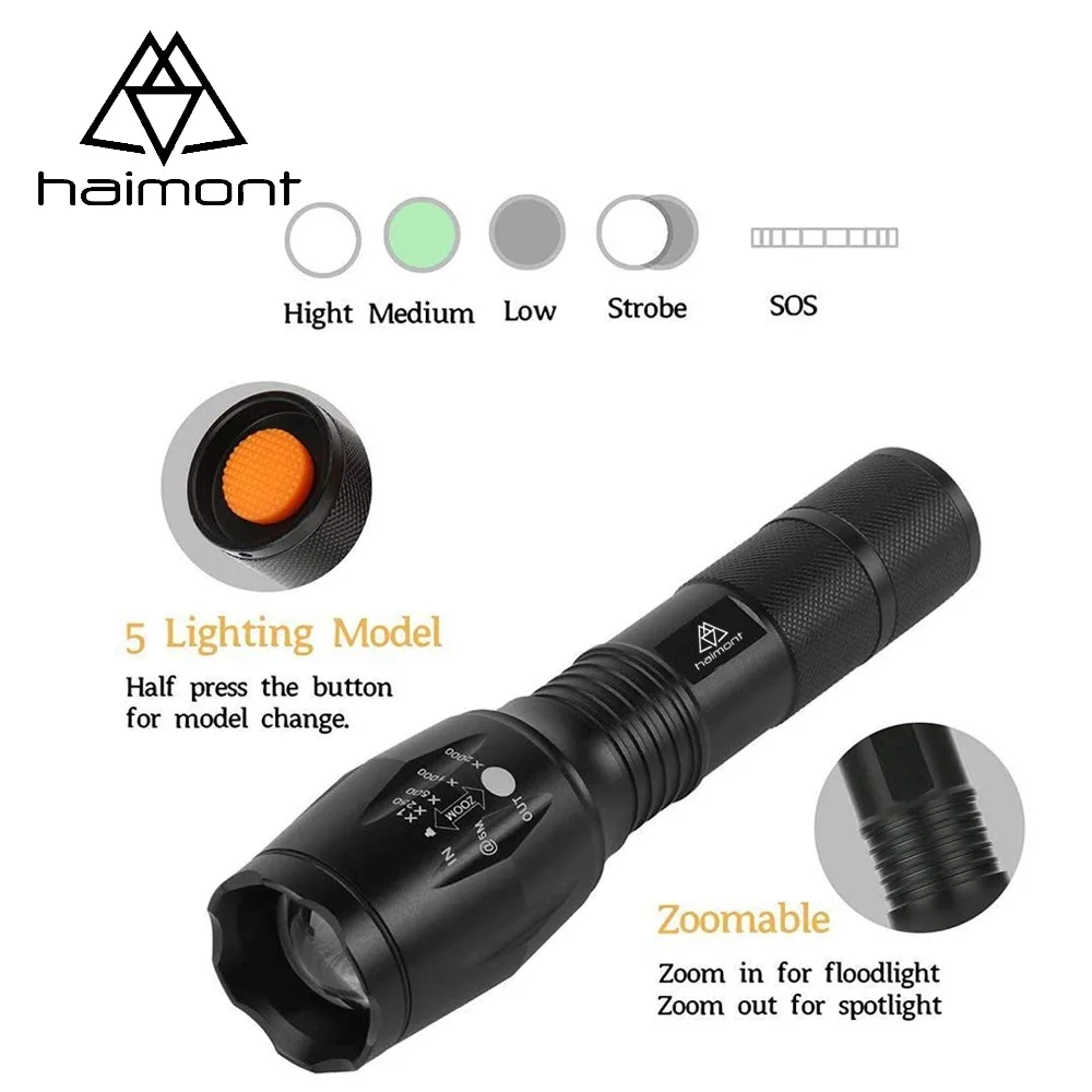 Product Name: Haimont Senter Taktis Senter LED Ultra Terang Dengan Fokus Yang Dapat Disesuaikan & 5 Mode Lampu Untuk Berkemah Mendaki (1 Pak)