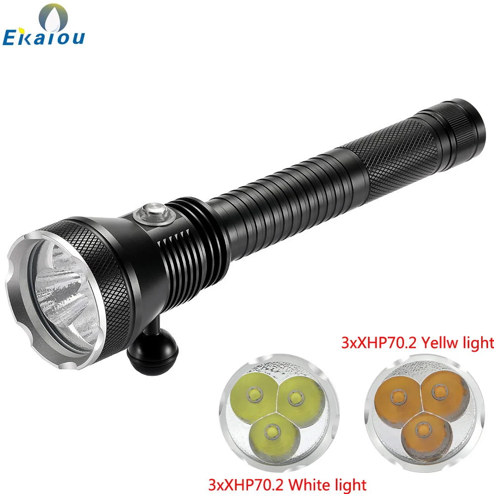 Special Offer Senter Selam LED Baru 3xXHP70.2 Lampu Penyelam Putih/Kuning Bawah Air 200M Lampu Taktis Selam Tahan Air Menggunakan Baterai 3X26650 Discount (40%OFF) Today!