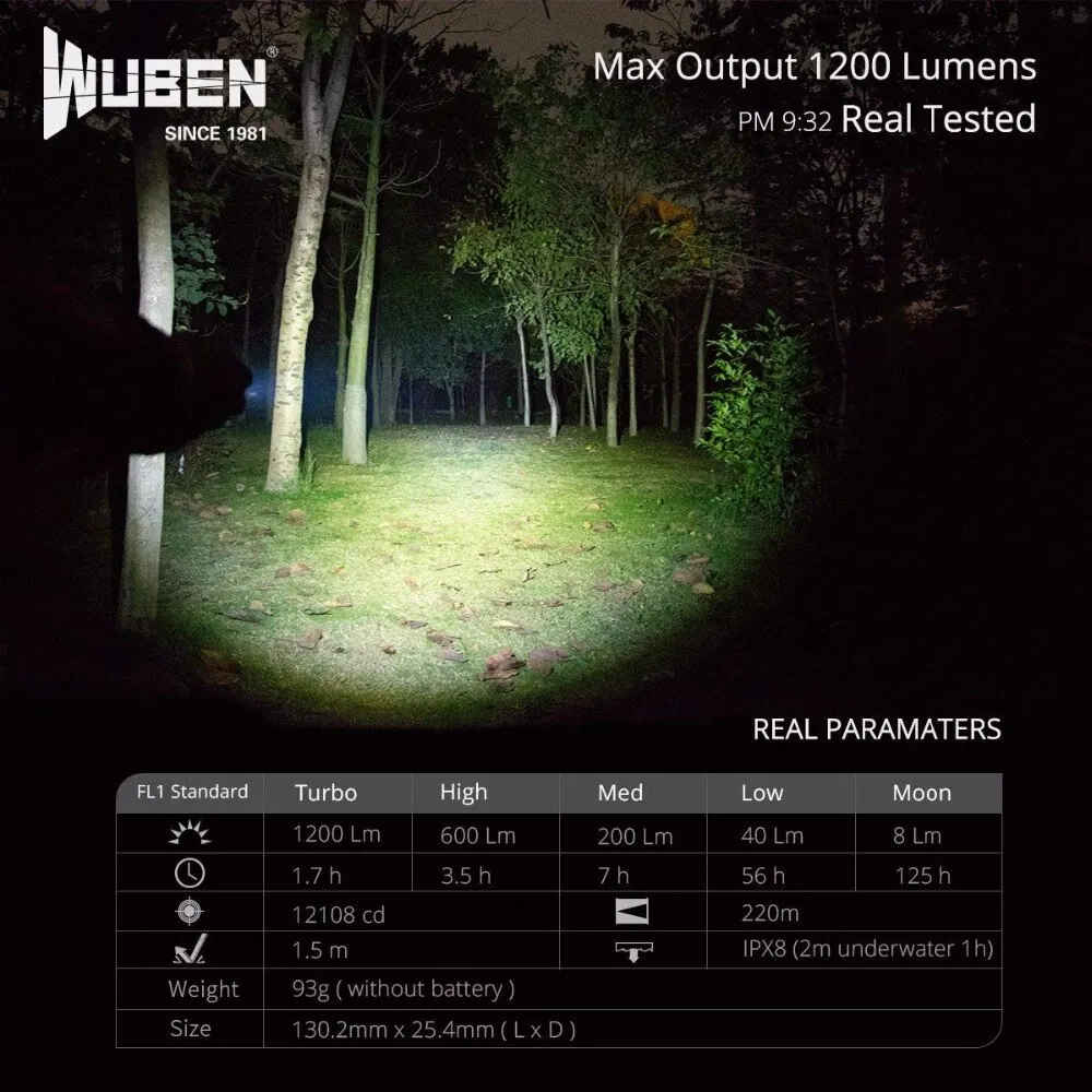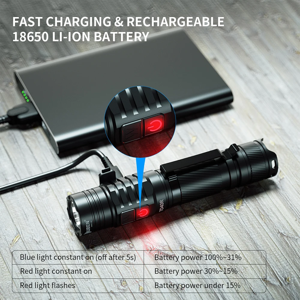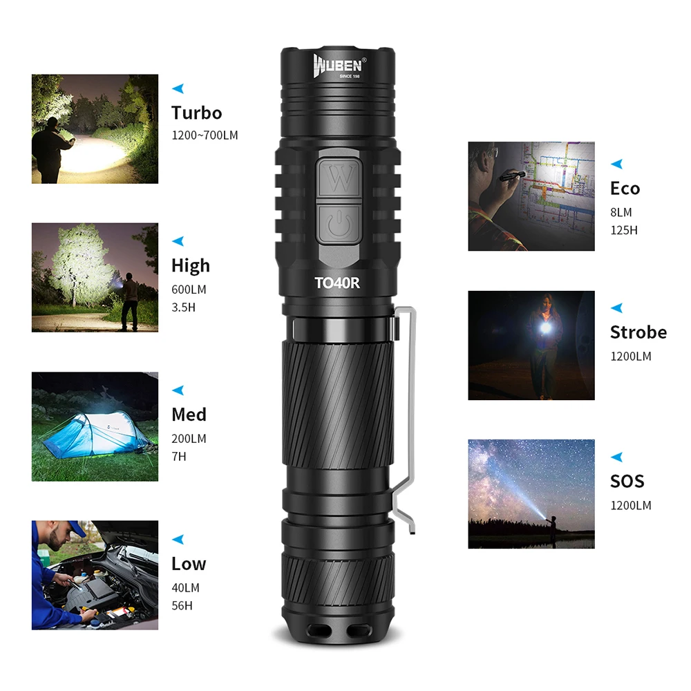 Product Name: WUBEN TO40R Senter LED Taktis 1200 Lumen 720 Kaki Jarak Pancaran Maks 18650 Li-baterai USB Obor Isi Ulang Untuk Luar Ruangan
