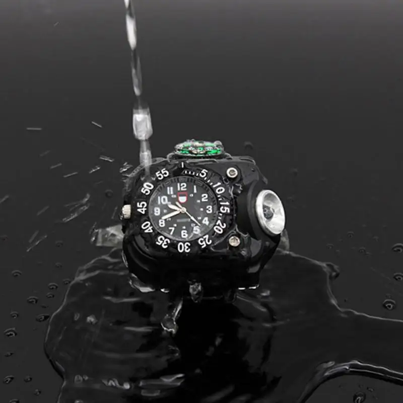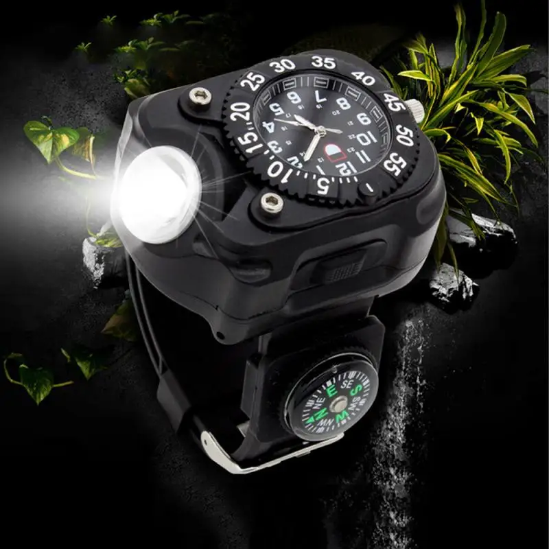 Product Name: 1 Buah Jam Tangan Olahraga LED Isi Ulang Taktis Militer Lampu Kompas Senter Lampu Pergelangan Tangan LED
