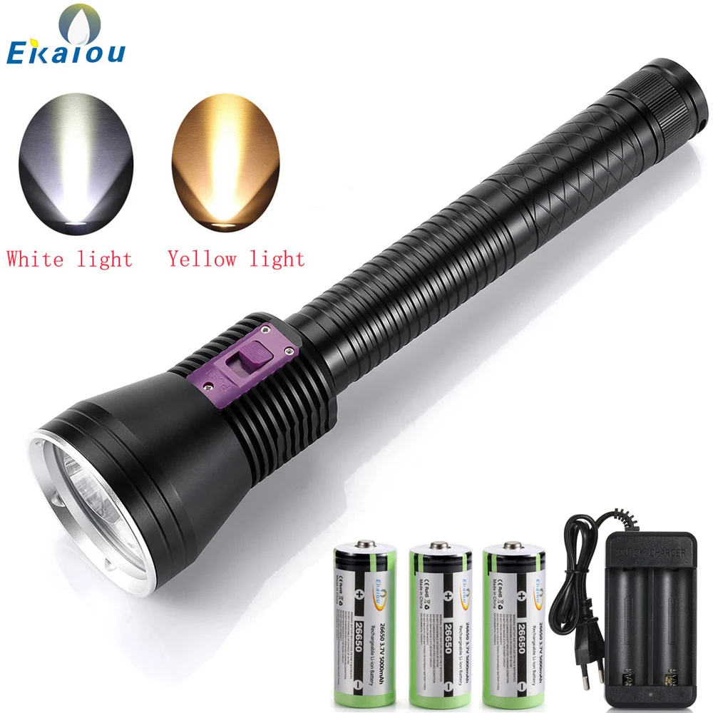 Product Name: Baru Kecerahan Tinggi 3xXHP70.2 LED Senter Menyelam 26650 Obor Taktis Bawah Air 200M Lampu Menyelam Tahan Air Portabel