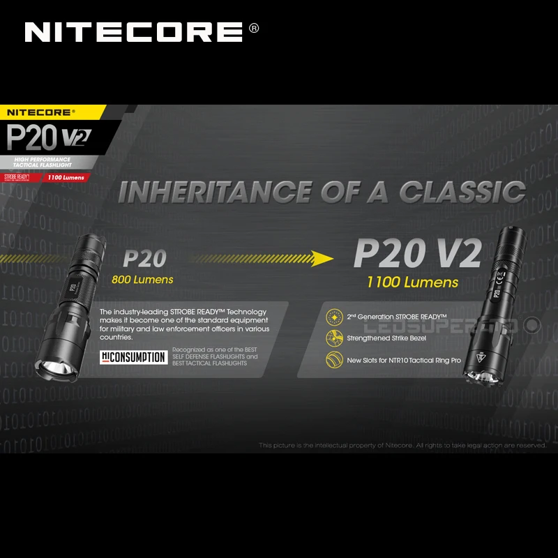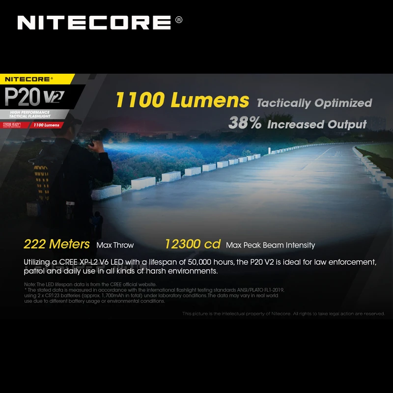 Product Name: Kinerja Tinggi NITECORE P20 V2 CREE XP-L2 V6 LED 1100 Lumen 2nd Generasi Strobo Siap™Senter Taktis