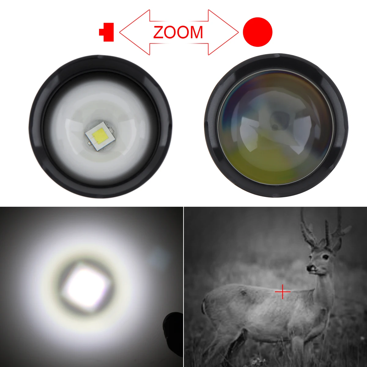 Product Name: Senter Taktis Keamanan HT11 54MM LED Senter Berburu Aluminium Dapat Diperbesar Dengan Lampu Sorot Putih Jarak Jauh Cahaya Kuat
